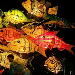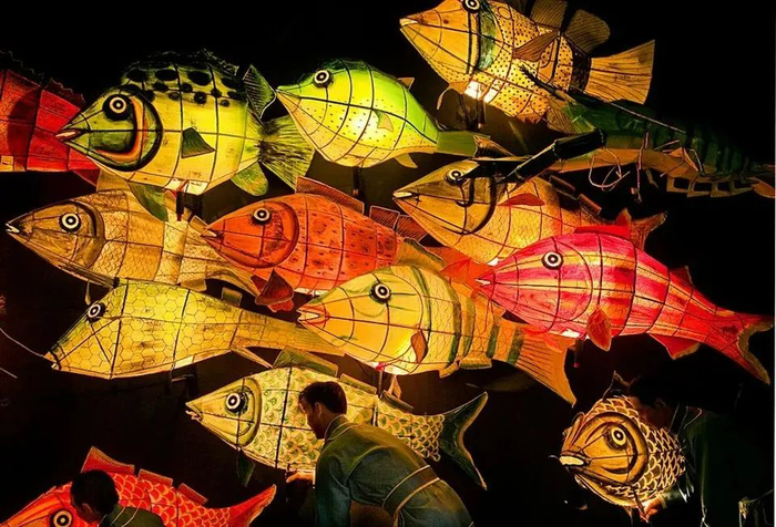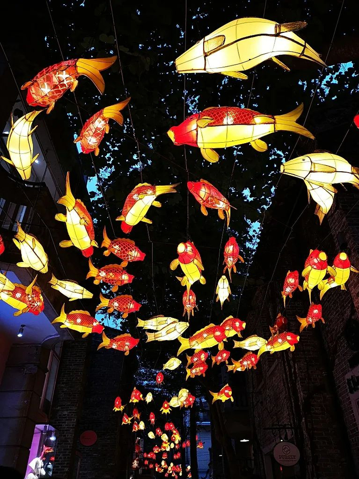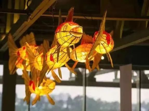 鱼灯微微舞动,姿容妙曼里面的灯火既不会熄灭也不会燃着鱼体的薄纱尽显工艺的精巧