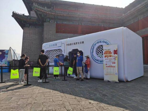 此次活动中,主办方邀请中旅旅行进行合作,共同打造新型旅游消费场景,现场的“中旅旅行筑梦太空舱”充满了科技感,“户外直播间”“中旅小课堂”等活动,吸引了不少线上线下的市民了解体验。故宫文化、角楼咖啡、稻香村等知名企业加盟市集活动,兔爷盲盒等文创产品颇受游客青睐。活动还同时邀请了湖北、内蒙古、新疆、西藏、怀柔等地企业,当地优质的特色产品吸引到许多市民采购,为对口帮扶农产品销售引流。