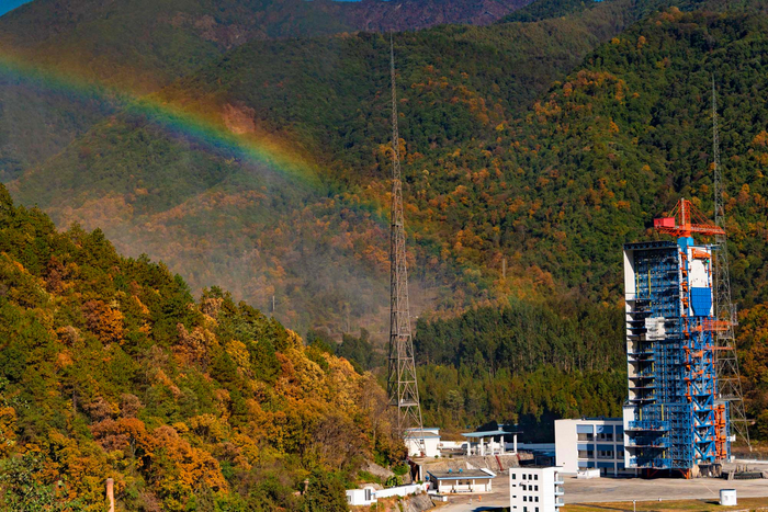 静谧的山谷间,强烈的灯光照射着群山环抱着的长征火箭。人们屏着呼吸,眼睛一眨不眨地盯着发射场,期待着那个时刻的到来。