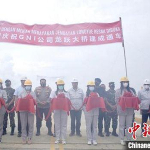 中新网雅加达9月10日电 (记者 林永传)10日,中国传统中秋佳节。在印尼苏拉威西岛北莫洛瓦里县,由中资德龙工业园捐建的龙跃大桥建成通车。