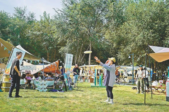 温榆河公园朝阳一期园区里,首届“温榆潮玩生活节”日前开幕。在公园18号门附近的阿尔法探险营地,房车、露营帐篷、复古摩托、潮流玩具等各式各样的潮玩展品引人驻足。“我就在朝阳住,也是看着这个公园一点点建起来的。现场这么多商品,还有表演,感觉特别国际范儿,而且自然环境也很好,户外能有这样的体验真的很不错!”专程前来“打卡”的市民周先生说。