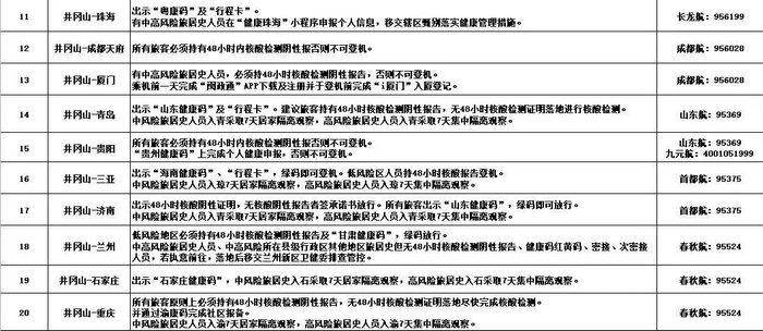 受新冠疫情影响,各地疫情防控政策调整频繁,请在出行前务必与出发地、目的地、经停(转)地疫情管控相关单位确认核酸检测报告时限要求以及落地管控政策,合理安排出行!
