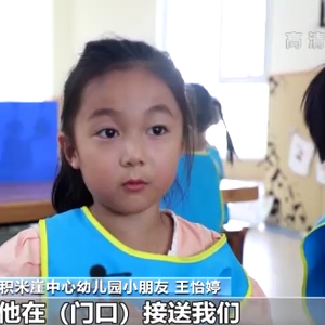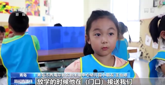 青岛市西海岸新区积米崖中心幼儿园小朋友 王怡婷:每天放学的时候他在门口接送我们。