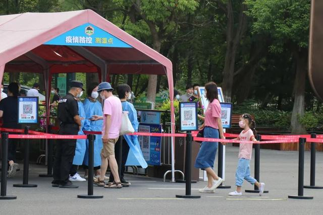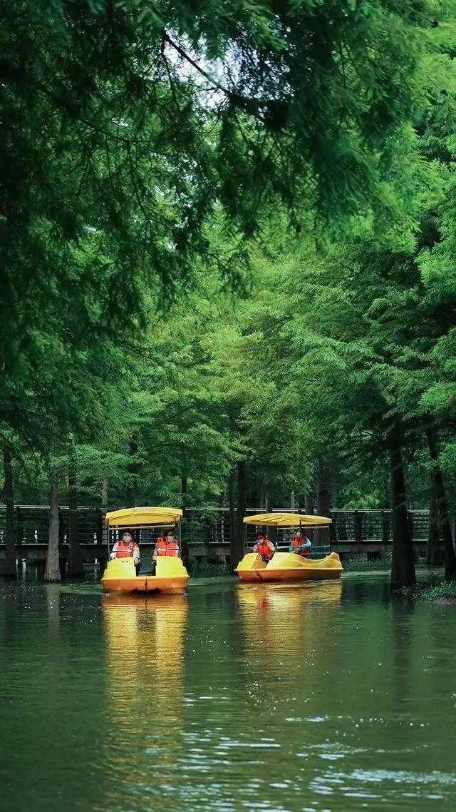上午9点多,崇明东平国家森林公园入口处,已有游客配合工作人员测量体温、扫描场所码,有序入园。走进园内,森林繁茂、空气清新、环境优美,满眼的绿色让人心情舒畅。