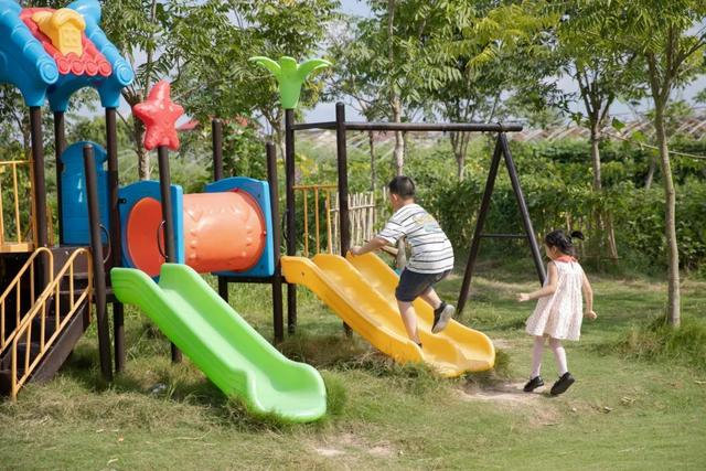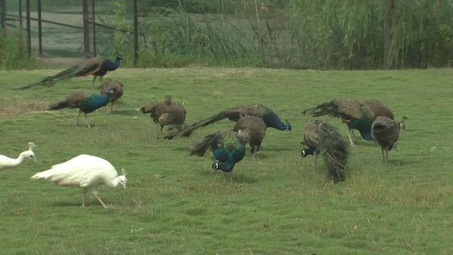 孔雀放飞表演是公园最受欢迎的项目之一。上午10:30、下午14:00,一天两场的孔雀放飞表演在孔雀园湖畔准时开始。随着哨声一响,上百只孔雀从湖对岸飞出,在草坪上争相嬉戏。除了孔雀放飞表演,一旁的孔雀和火鸡互动区,市民还可以近距离观察孔雀和火鸡,有小朋友走进场地内进行喂食、互动拍照,和小动物亲密接触。在儿童乐园里,小火车、滑梯、秋千等各种类型的游乐项目吸引了不少儿童玩耍。