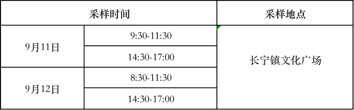 根据市、县最新疫情防控工作指引,为进一步全面筑牢疫情防控坚固防线,经研究决定长宁镇将于9月11日至9月12日对重点人群开展免费核酸检测工作。现将有关事项通告如下: