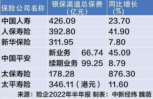 中报数据显示,太保寿险银保渠道保费增幅最高,上半年同比大幅增长876.3%,增速最低的新华保险也同比增长了7.8%。