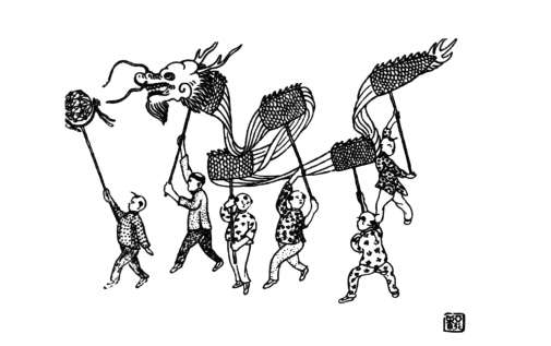 《龙灯》,蒋彝画,图片选自《儿时琐忆》。