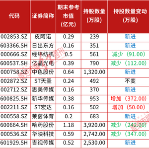 Wind数据显示,张素芬二季度同时出现在了21 只个股的前十大流通股东中,其中,新进的家数多达15只,总持仓市值由一季度的5 亿元增至6.32 亿元。