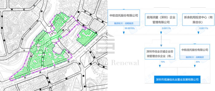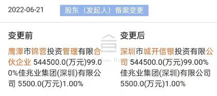 申报主体为深圳市观澜佳兆业置业发展有限公司(以下简称“观澜佳兆业”)。此前观澜佳兆业由深圳市佳业古墟企业咨询管理合伙企业(有限合伙)、佳兆业城市更新分别持股70%、30%;7月14日,佳兆业城市更新集团(深圳)有限公司转让观澜佳兆业30%股份予中航信托股份有限公司。而深圳市佳业古墟企业咨询管理合伙企业(有限合伙)由中航信托99%持股。