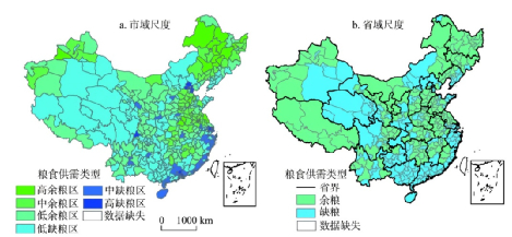 中国粮食供需分布