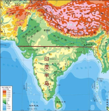 印度半岛等高线地形图