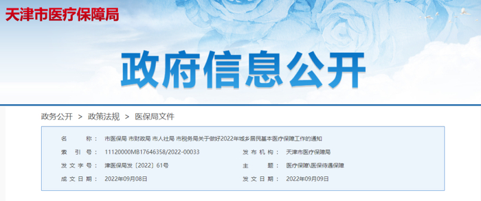 2023年天津城乡居民医保调整!涉及缴费、报销......