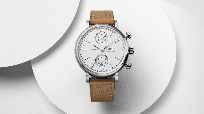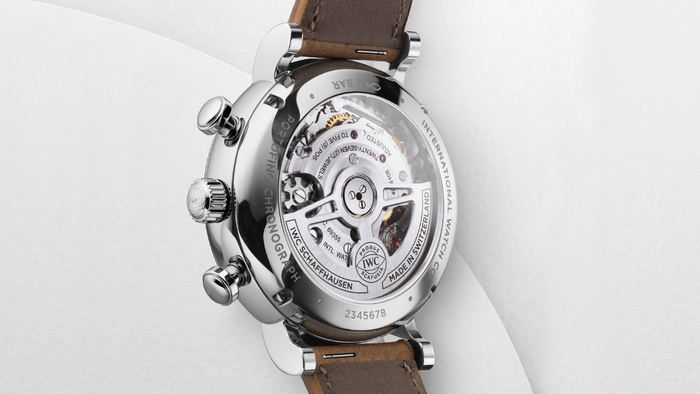 最后,全新柏涛菲诺计时腕表39是本次全新发布中表壳最大的腕表,搭配完全可追溯的米色小牛皮表带,设计低调内敛又适合运动时穿搭。该枚腕表搭载IWC万国表自制69355型机芯,配备经典导柱轮设计,透过蓝宝石玻璃表背可看到机芯,尽显IWC万国表柏涛菲诺系列腕表的复杂功能工艺之美。