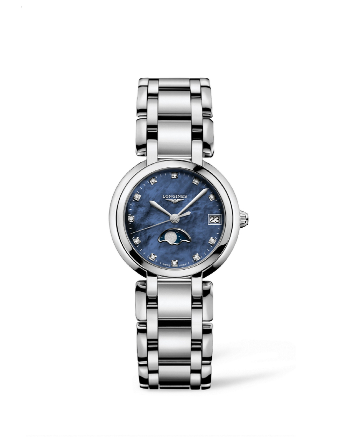 浪琴表心月系列月相腕表,采撷月亮的轻柔线条,打造精巧圆润的表壳,寓意心想事成的美好祈愿。蓝色珍珠母贝表盘宛如深邃夜空,饰以灿若繁星的钻石时标,在浪漫的璀璨星河下,表盘6点钟位置演绎浪漫的月相变幻;搭配精钢表链,彰显大气时尚的优雅风格,在中秋各类聚会中,都可轻松脱颖而出。
