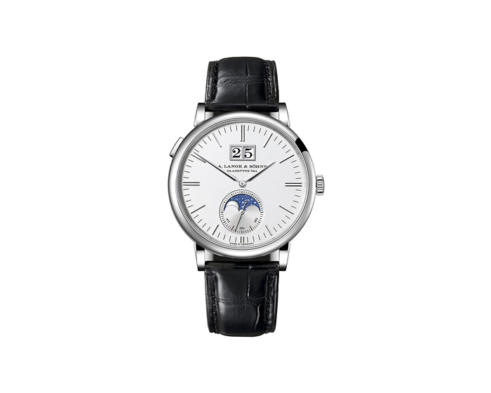 SAXONIA萨克森系列以极简的德系美学设计,呈现来自朗格发源地萨克森州的精密工艺。这一对由18K白金和18K玫瑰金材质制成的SAXONIA萨克森月相腕表直径为40毫米,银白色表盘上设有朗格大日历显示、精确月相显示和小秒盘,以及与表壳同材质的指针和时标刻度。小三针的布局和呈垂直轴对称的盘面设计,在腕表工艺和美学方面皆展现独特魅力。