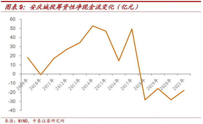 观察后续,安庆城投于2012年12月31日继续在公开市场发行7年期企业债,票面利率6.76%。当前存续债仍有8只,技术性违约后未再出现偿还困难问题。从筹资性净现金流来看,安庆城投筹资恢复较快,虽技术性违约后第1年筹资性净现金流为负,但第2年开始转为净流入。