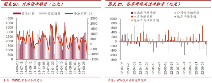 即便当前经济下行,发挥基建拉动效应是推动经济发展的重要手段之一,但政府坚决不新增隐债的态度并没有动摇,而2022年4月18日《人民银行 外汇局出台23条举措全力做好疫情防控和经济社会发展金融服务》的“依法合规保障融资平台公司合理融资需求”出台后也并没有一味放松审核端,从今年城投净融资来看,城投融资环境整体仍偏紧。
