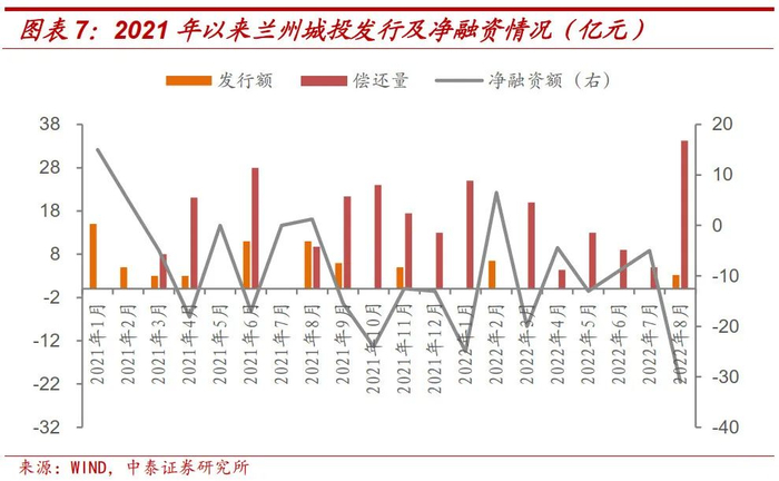 2021年以来,兰州市城投债券发行规模很小,多数月份为净偿还状态。到期债券规模较大,但债券市场接续却不畅,偿还压力不断加大。