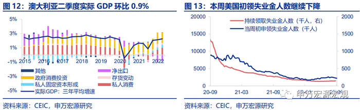 供给与就业:德国7月工业生产指数与制造业订单均小幅下滑,高能源价格持续影响工业生产和商品需求。澳大利亚二季度GDP环比0.9%,增速稍高于一季度。本周美国初领失业金人数继续下降至22.2万人。
