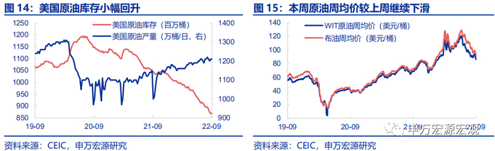 油价和PPI:本周美国原油库存小幅回升130万桶。原油周均价继续下滑,一方面供给端并不紧张,另一方面发达国家经济衰退风险加强。