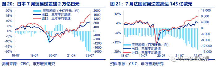 全球贸易:7月日本和法国贸易逆差均创纪录。日本进口增速再度提升,导致贸易逆差破2万亿日元。受出口下滑影响,法国7月贸易逆差达创纪录的145亿欧元。