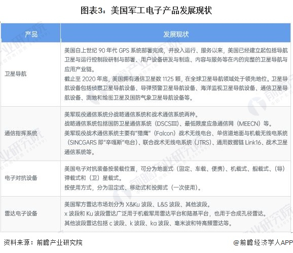 美国主要的军工电子产品包括卫星导航、通信指挥系统、电子对抗设备、雷达电子设备等,其主要特点和发展现状如下;