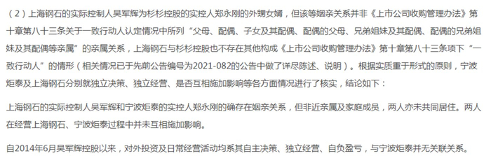 面对质疑,吉翔股份在回复监管函时承认,上海钢石实控人吴军辉的配偶吴海霞,为杉杉控股实控人郑永刚的外甥女,但吉翔股份认为,外甥女婿与舅舅并非《上市公司收购管理办法》认定的亲属关系。