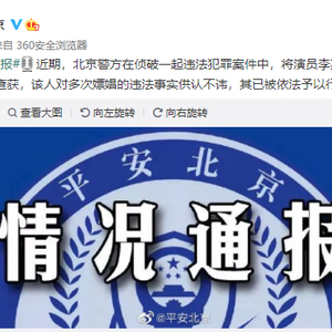 9月11日,@平安北京 发布警情通报:近期,北京警方在侦破一起违法犯罪案件中,将演员李某某(男,35岁)查获,该人对多次嫖娼的违法事实供认不讳,其已被依法予以行政拘留。经总台央视记者与相关部门核实,演员李某某系李易峰。