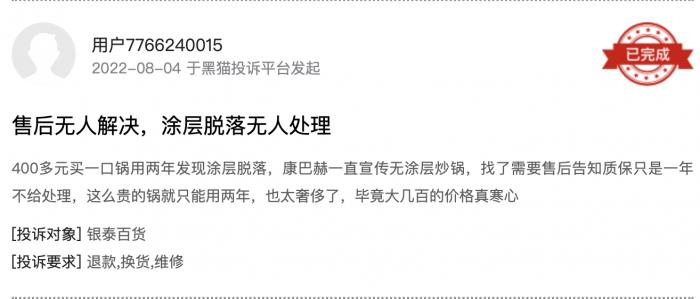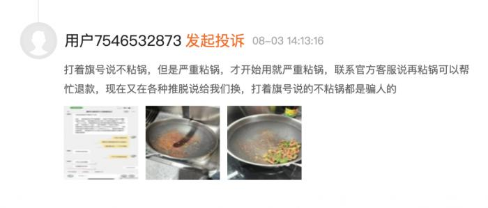 消费者反映,“才用几次,锅都黑了”“使用一年不到出现鼓包”,甚至“锅盖在炖肉时炸裂”。
