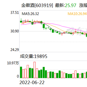 今日开盘,金徽酒报26.00元/股,截至稿件发布微跌1.52%,报25.96元/股。