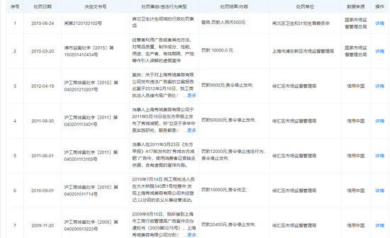 锦波生物2020年与2021年的第一大客户秀域集团,旗下同样拥有医美业务。在从事医美业务之前,秀域集团主打“古方减肥”,因虚假宣传等事由多次受到当地市场监督管理局的处罚。秀域此前的经营主体“上海秀域美容有限公司”共有7条合计12.19万元的处罚记录,事由多为虚假广告,如“立足于多年中医实践,服务都是由专业护士亲自操作,减肥效果得到20万消费者亲身体验”等。