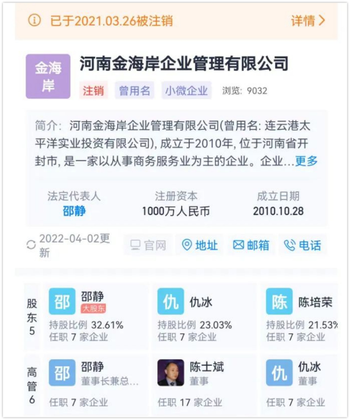 从时间线来看,2021年1月,金海岸公司从连云港东海经济开发区迁址到河南省开封市兰考县数字普惠金融小镇,并进行更名(原名连云港太平洋实业投资有限公司),着手准备公司注销事宜。