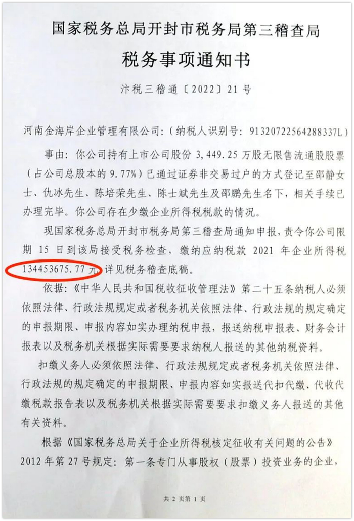 近期,国家税务总局开封市税务局发布了对金海岸公司及其5名股东下发的《税务检查通知书》及《税务事项通知书》送达公告。