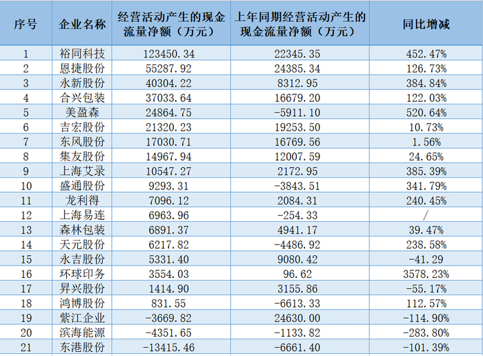 增幅在10%~20%之间的5家企业,分别为裕同科技、滨海能源、美盈森、天元股份、永新股份,增幅在10%以下的4家企业,分别为上海艾录、东风股份、吉宏股份、森林包装。