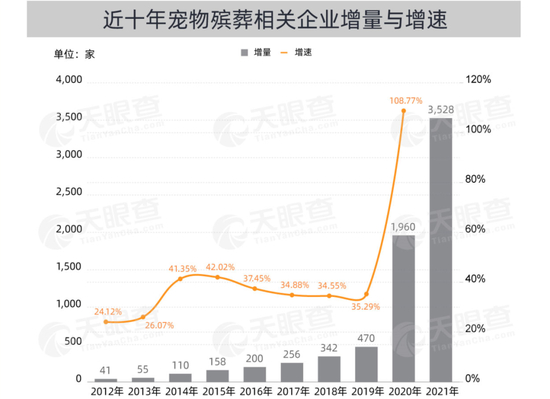 天眼查数据显示,截至2021年11月,我国目前有超6900家状态为在业、存续、迁入、迁出的宠物殡葬相关企业。以上仅是其中最受外界关注的典型代表。同时近两年,我国新增超过3500家宠物殡葬相关企业,同比增长127%,而每月新增超230家宠物殡葬企业。短期内跑出下一个恩宠堂,也并不意外。