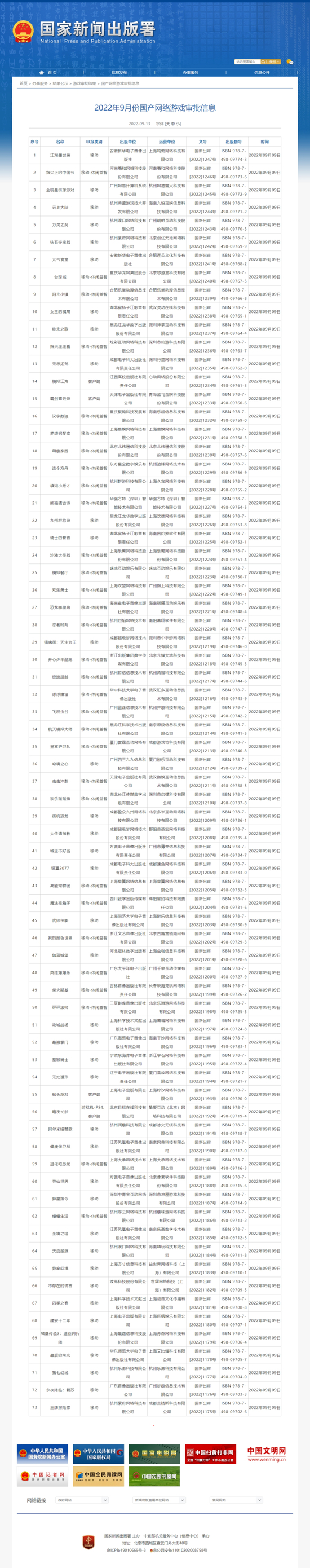 9月发放73款国产网络游戏版号