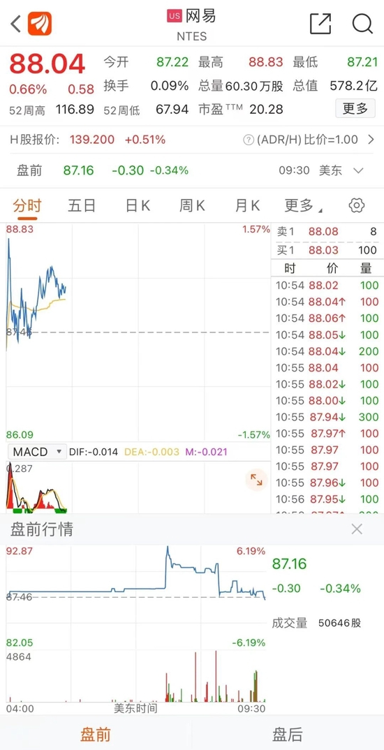 受此消息影响,9月13日,网易美股盘前一度涨超6%,不过,由于美国CPI数据大超预期,美股全线下挫,网易涨幅大大缩窄,截至11点左右,涨幅约1%。