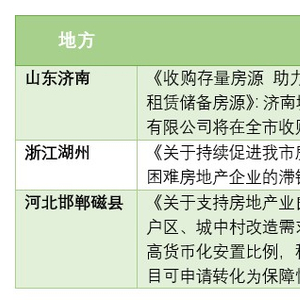 除了上述提及的济南,浙江湖州也推出过类似的政策。今年8月15日,浙江省湖州市房地产市场平稳健康发展联席会议办公室发布《关于持续促进我市房地产平稳健康发展的通知》提到,鼓励收购滞销房。对困难房地产企业的滞销房,鼓励国有企业收购,作为保障安置用房等。