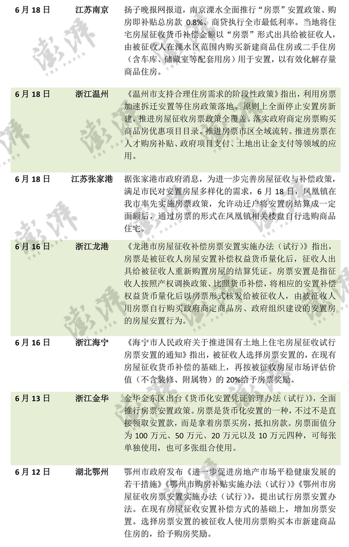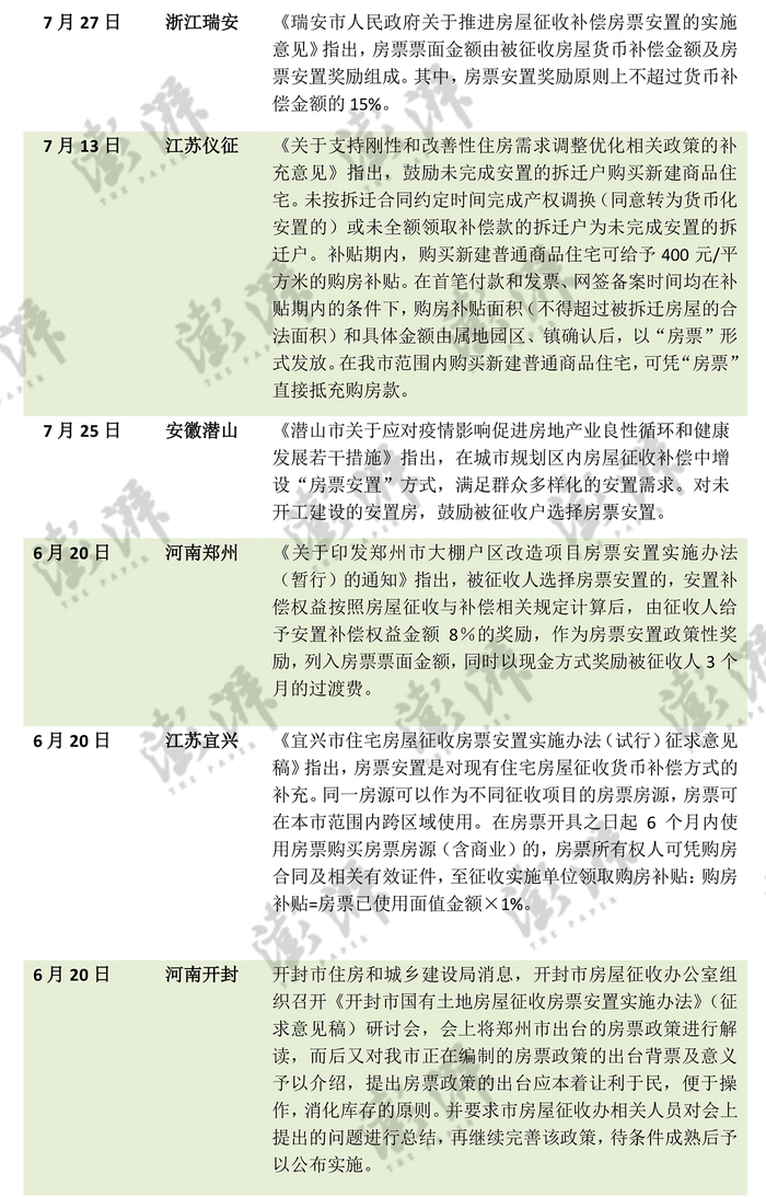 据澎湃新闻不完全统计,仅今年以来,至少包括河南郑州、江苏宜兴、河南开封、江苏南京、浙江温州、江苏张家港、浙江龙港、浙江海宁、浙江金华、湖北鄂州、浙江丽水、浙江宁波、浙江温岭、河南许昌、福建邵武、江苏江阴、安徽界首、江苏常熟、河南信阳、四川宜宾、安徽潜山、江苏仪征、浙江瑞安、浙江衢州、贵州贵阳、湖北麻城、浙江永康、安徽蚌埠、河南驻马店、江苏泰州等30城探索实施相关“房票”安置政策。