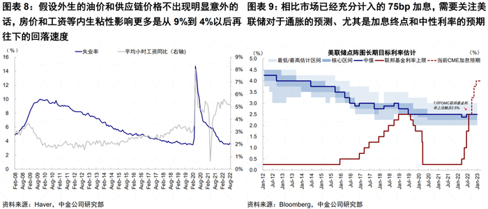 二、货币政策影响:通胀路径不变就不至于改变加息路径和终点;下行风险仍来自意外的供给冲击