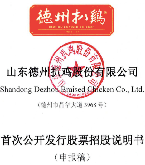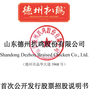 据大象君了解,“中华第一鸡”山东德州扒鸡股份有限公司(下称“德州扒鸡”)首次公开发行股票招股说明书(申报稿)在证监会网站正式对外披露,拟发行不超过3000万股,拟在沪市主板上市,国泰君安为此次IPO的保荐机构。