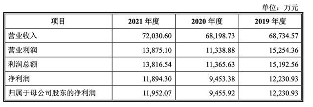 财务数据方面。2019年至2021年,德州扒鸡的营收分别为6.87亿元、6.82亿元和7.20亿元;净利润则分别为1.22亿元、0.94亿元和1.19亿元。