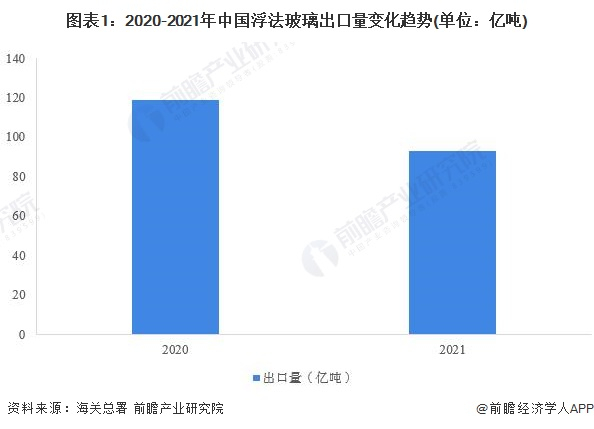 从浮法玻璃出口贸易情况,到2021年,我国出口浮法玻璃总量为92.76亿吨,同比下降22.0%。