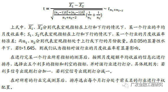 具体来看,我们利用T检验判断某个指标(取历史均线后)处于上行和下行的情况下,某个资产的收益是否存在明显差别,如果t值较大,则认为该指标的变化趋势对于该行业的收益率存在显著影响;