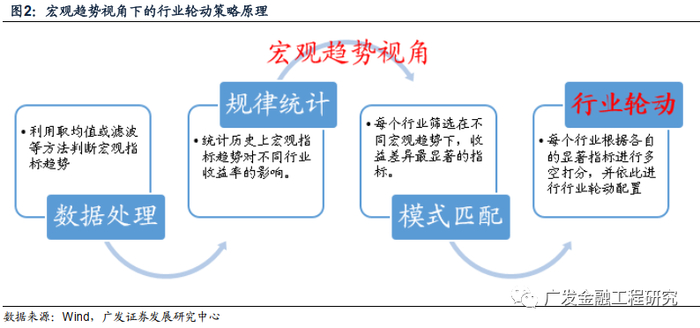 完善行业轮动框架,探寻宏观趋势策略:一个完善的行业轮动框架,通常涵盖对宏观变量的解读、对行业景气度的分析以及考虑个股微观特征等多个维度。基于宏观维度,前期我们通过对不同环境极端状态进行提炼,刻画了从宏观到行业涨跌特征的知识图谱,策略样本外两年多取得了稳定的表现。本文同样基于宏观视角,区别于事件驱动,选择从趋势刻画的角度,识别有效的行业轮动信号并探索其中可量化建模的方法。