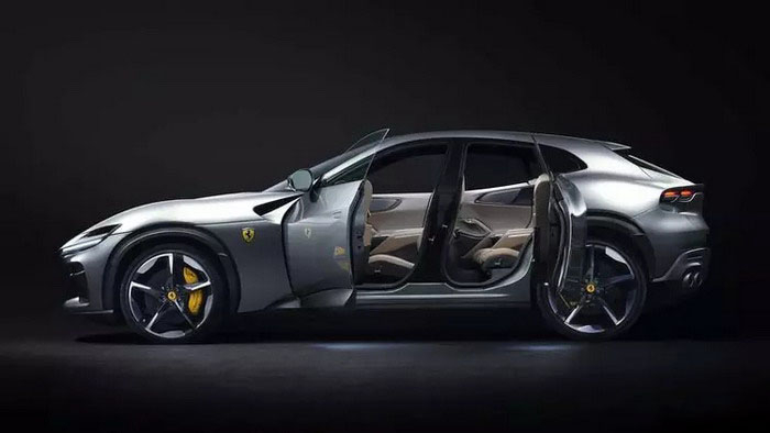 新车采用了对开门设计,并且还加入了电动开关门系统,这在强调极致运动化的法拉利车型中极为罕见,也凸显了其更强的豪华属性。此外,新车还引入了SUV车型常见的黑色轮眉面板,车门下方的侧裙也采用了较为宽厚的设计,配合较高的离地间隙,SUV氛围十足,同时双色五辐式轮圈和碳陶制动系统等的出现,又让人确信这仍然是一款法拉利。