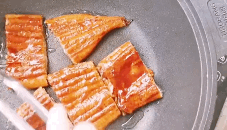 我烤了香喷喷的鳗鱼片,光是看着就要流口水了,连吃了两碗饭,太好吃了!