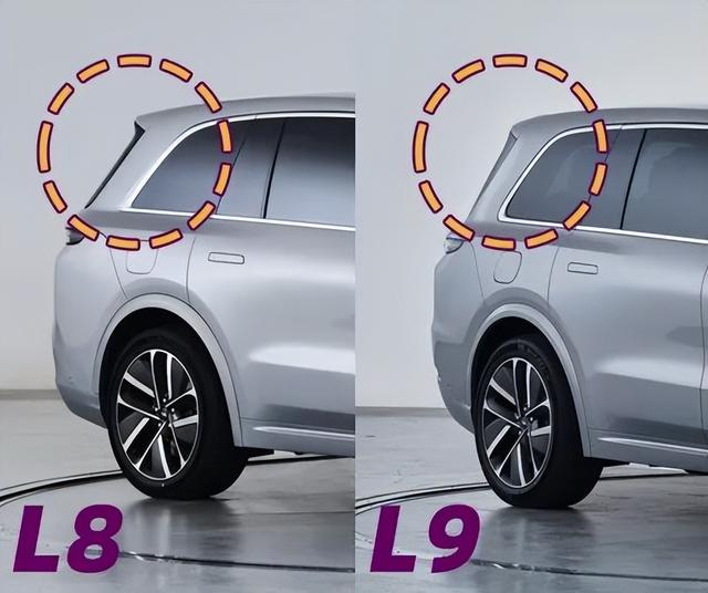答案:上面是理想L8,下方是L9。是不是还看不出来区别在哪?教给大家一个小技巧:看D柱,L8要更为倾斜,尾窗接近于扇形。而L9的D柱更为平直,尾窗也更接近四边形。