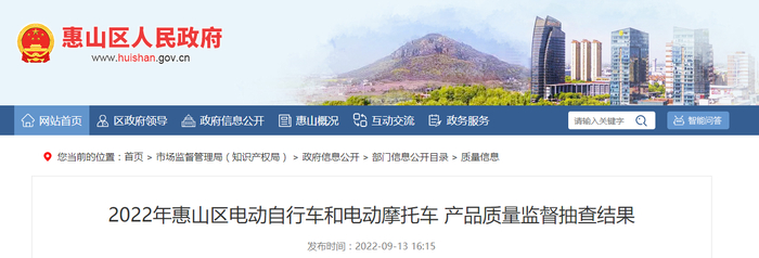 中国质量新闻网讯 近日,2022年江苏省无锡市惠山区电动自行车和电动摩托车产品质量监督抽查结果公布。